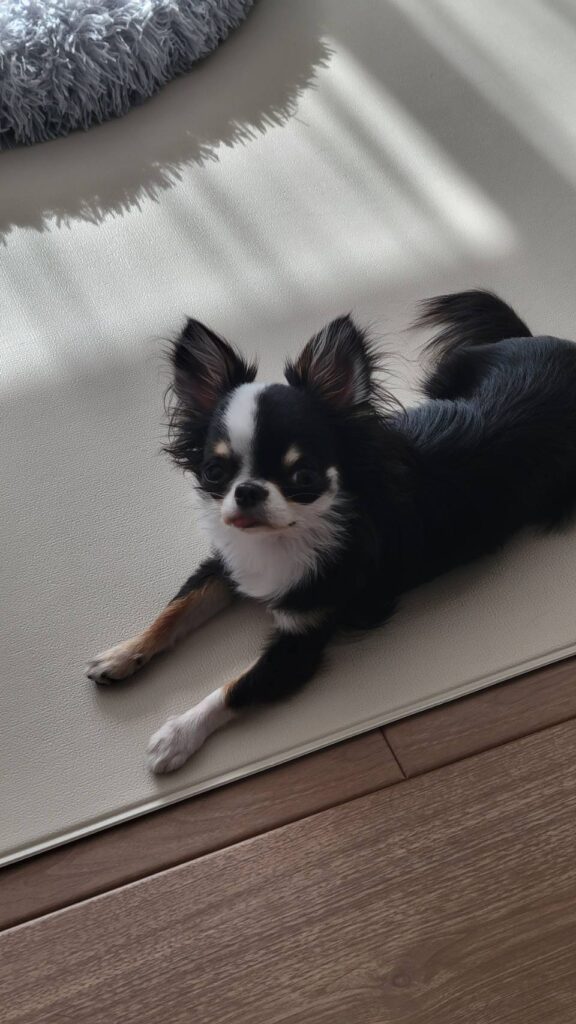 飼っているチワワは『とと丸』という名前でブラックタンホワイトのロングコートチワワです🐶